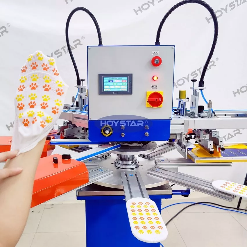Fabrikatzaile eta hornitzaile profesional gisa, HOYSTAR High Rapid 2 Koloretako Galtzerdiak Serigrafia Inprimatzeko Makina ehungintza puntuzko industrian aplikazioetarako diseinatuta dago. 1000PCS/Hr arteko abiadurarekin, egokia da galtzerdi irristagaitzak, haurtxoentzako galtzerdiak, helduentzako galtzerdiak, futboleko galtzerdiak, etab. Mahai birakariaz hornituta, oso erosoa da galtzerdiak kargatu eta deskargatzeko. PLC ukipen-pantailaren kontrola, funtzionatzeko oso erraza. Lehortzeko sistemaz hornitutako makinak silizioa eta tinta ondo lehor ditzake.