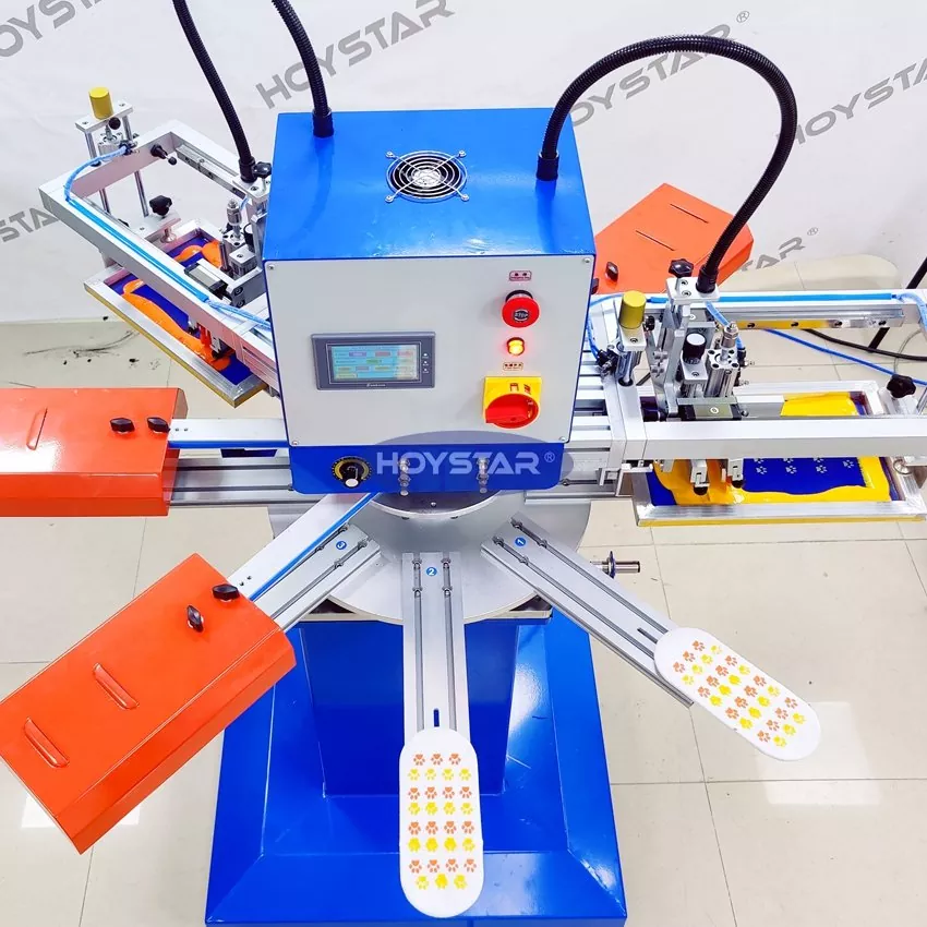 Txinako fabrikatzaile profesional gisa, HOYSTAR 2 Koloretako Galtzerdiak Serigrafia Makina bizkorra eskaini nahi dizugu. Gure makinek PLC eta ukipen-pantailaren kontrola hartzen dute, eta hainbat galtzerdi mota inprimatzeko erabiltzen dira batez ere. Makinak galtzerdien zoletan eta orpoetan inprimatu dezake eta silizioa eta tinta ondo lehortu ditzakeen lehortzeko labeaz hornituta dago.