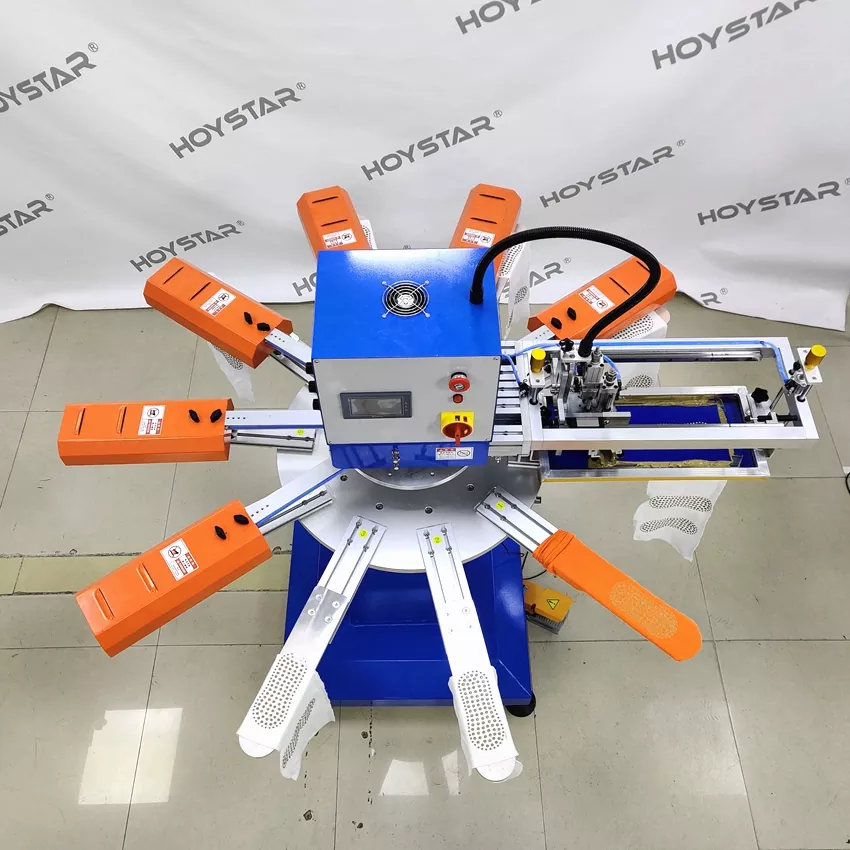 Txinako fabrikatzaile profesional gisa, galtzerdietarako HOYSTAR serigrafia-makina azkarra eskaini nahi dizugu. Gure makinek PLC eta ukipen-pantailaren kontrola hartzen dute, eta hainbat galtzerdi mota inprimatzeko erabiltzen dira batez ere. Makinak galtzerdien zoletan eta orpoetan inprimatu dezake eta silizioa eta tinta ondo lehortu ditzakeen lehortzeko labeaz hornituta dago.