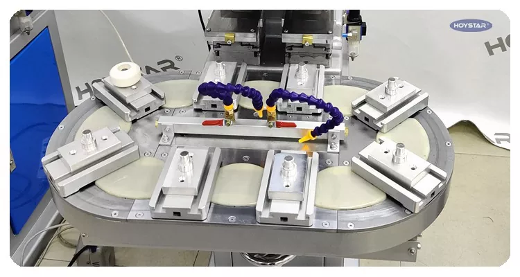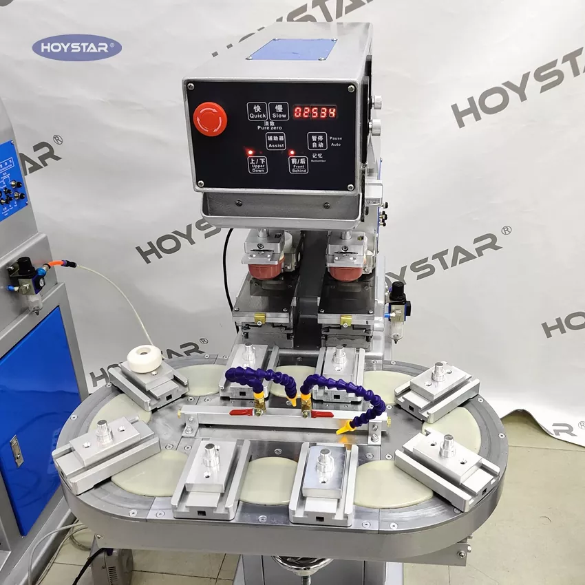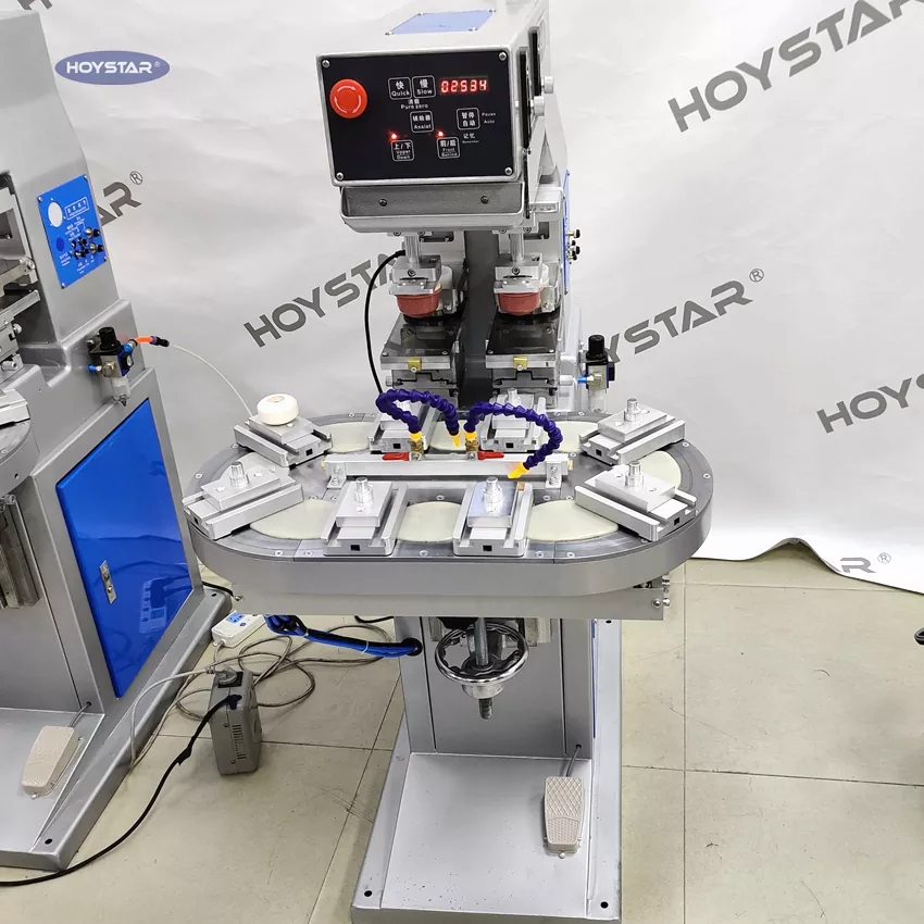 Txinako fabrikatzaile profesional gisa, eraginkortasun handiko HOYSTAR bi koloretako mahai birakaria inprimatzeko makina eskaini nahi dizugu. Makina honek produktuen bi koloreko tampografia etengabea ahalbidetzen du, kolore bakarreko erregistroa ziklo bakarrean burututa. Anezka motako pad inprimagailuekin alderatuta, abiadura oso azkarra da. Hainbat elementutan inprimatzeko egokia da, besteak beste, produktu elektronikoak, plastikozko maskorrak, hardware produktuak, papergintza eta logotipoak arte eta eskulan txikien gainazalean, zure bi koloretako inprimatzeko eskakizunak bete ditzake.